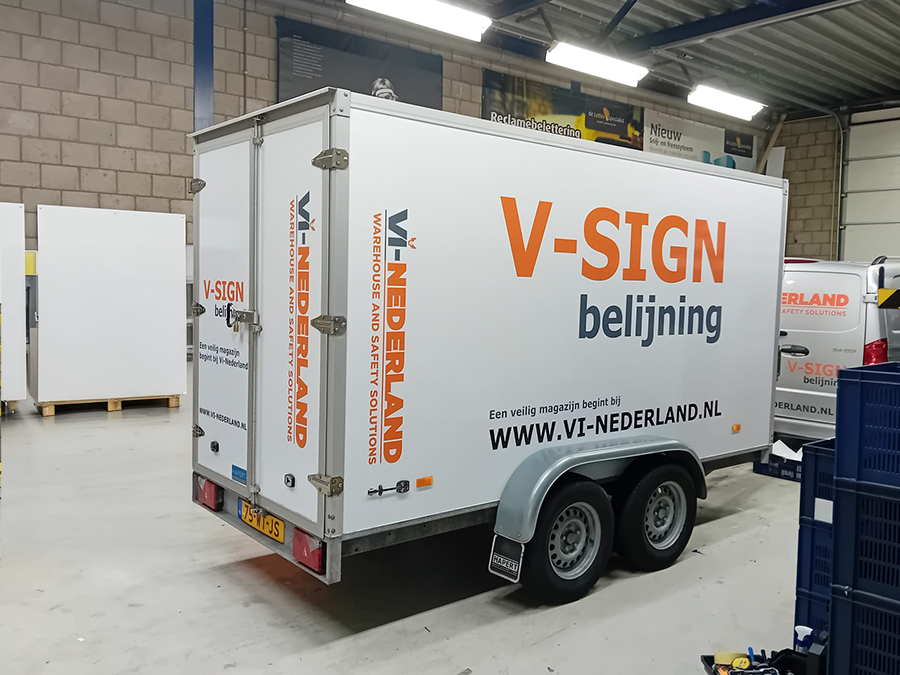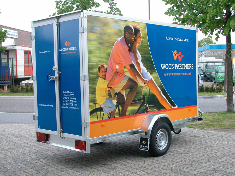 Of je nu alleen je logo wilt tonen of je aanhangwagen wilt omtoveren tot een echte eyecatcher met een full wrap: wij regelen het van A tot Z. Onze ervaren monteurs en plakspecialisten staan klaar voor elk project, groot of klein.