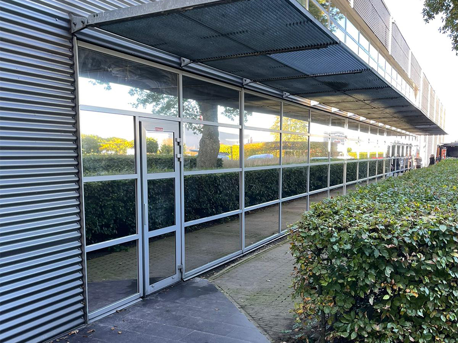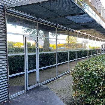 Zonwering en veiligheidsfolie beschermd