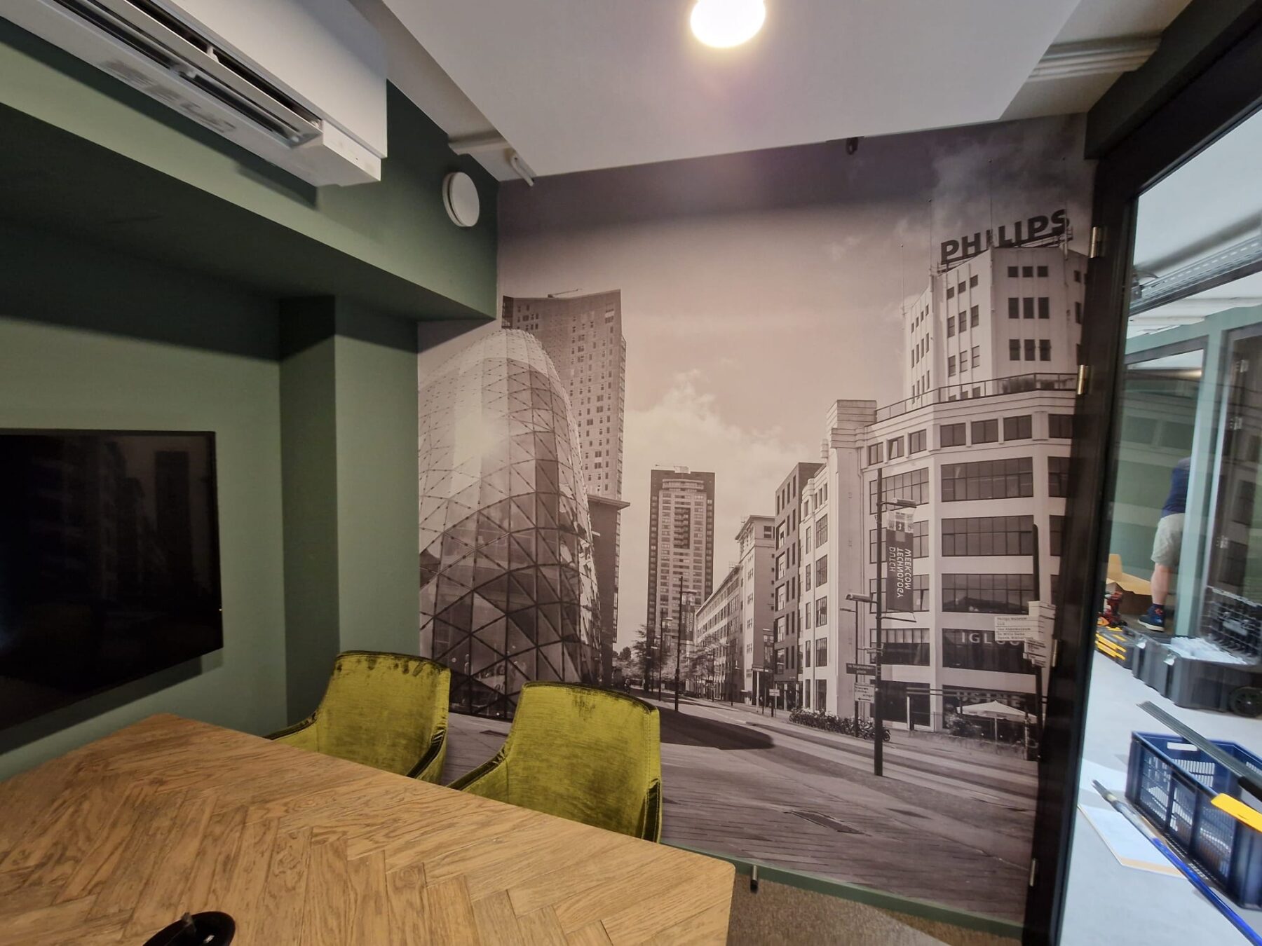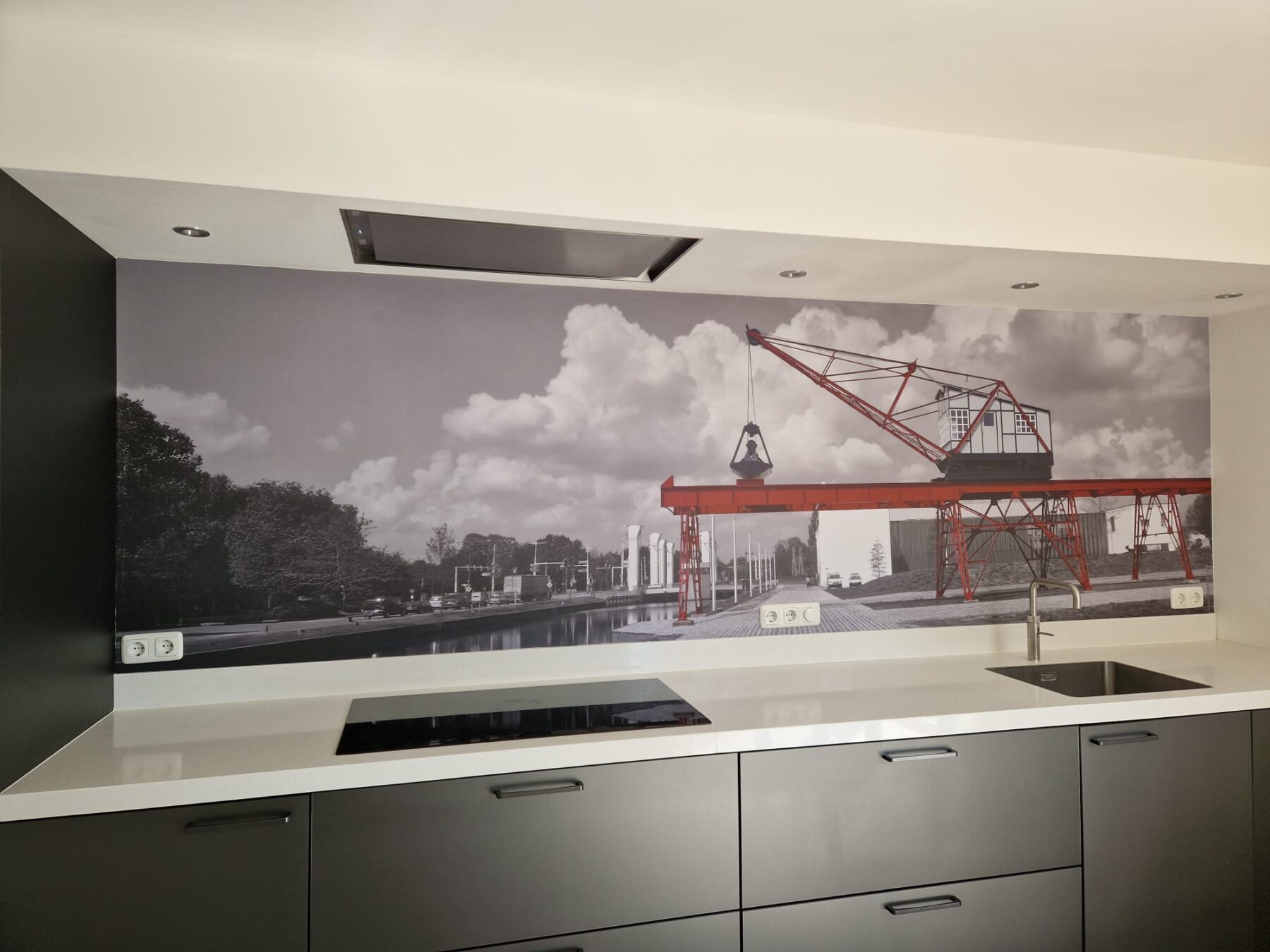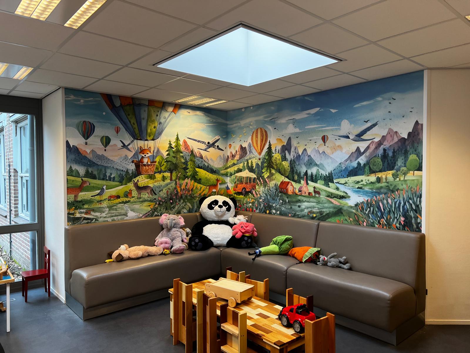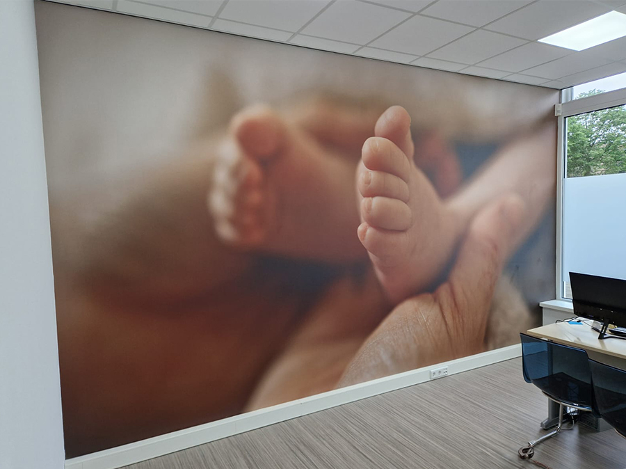 Naast fotobehang, kunnen we de wand ook voorzien van muurfolie. Deze speciale folie wordt in onze productieruimte compleet full colour geprint en op maat gesneden. De folie wordt voorzien van een beschermend laminaat in glans of mat. De folie wordt door onze monteurs vakkundig op de muur voorzien en in geföhnd, zodat de print de structuur van de muur aanneemt. Een prachtig plaatje!