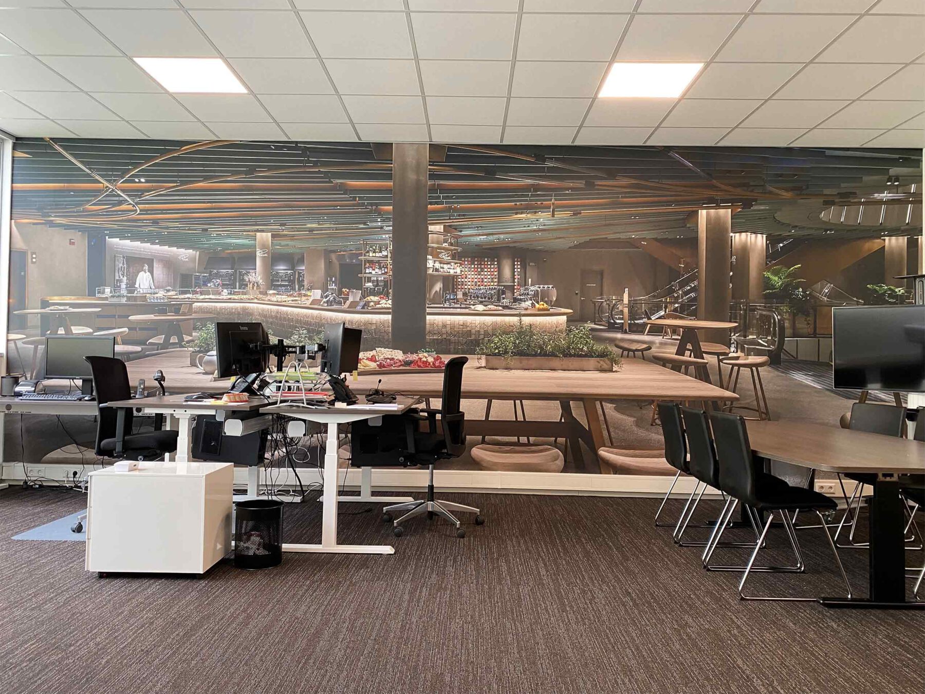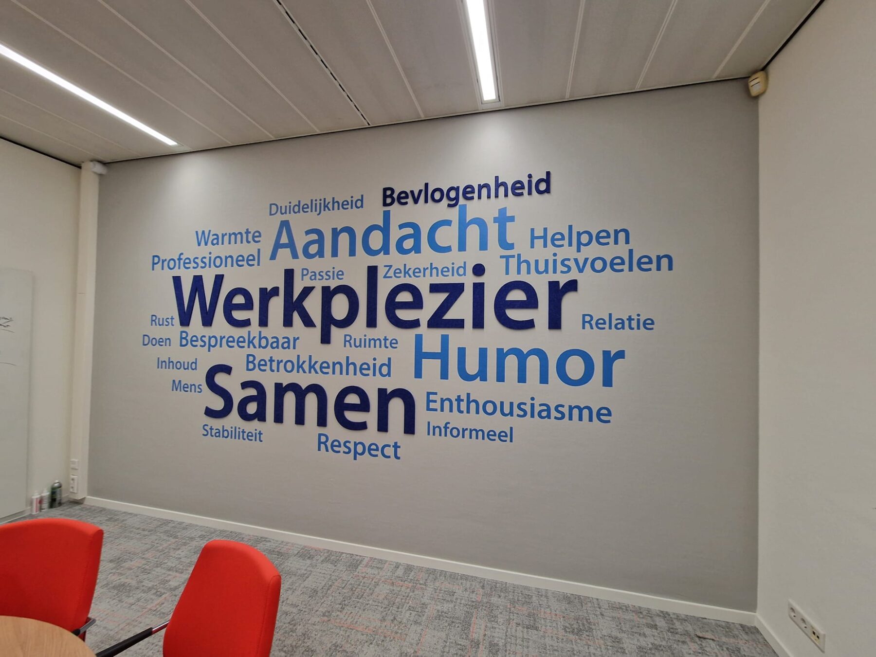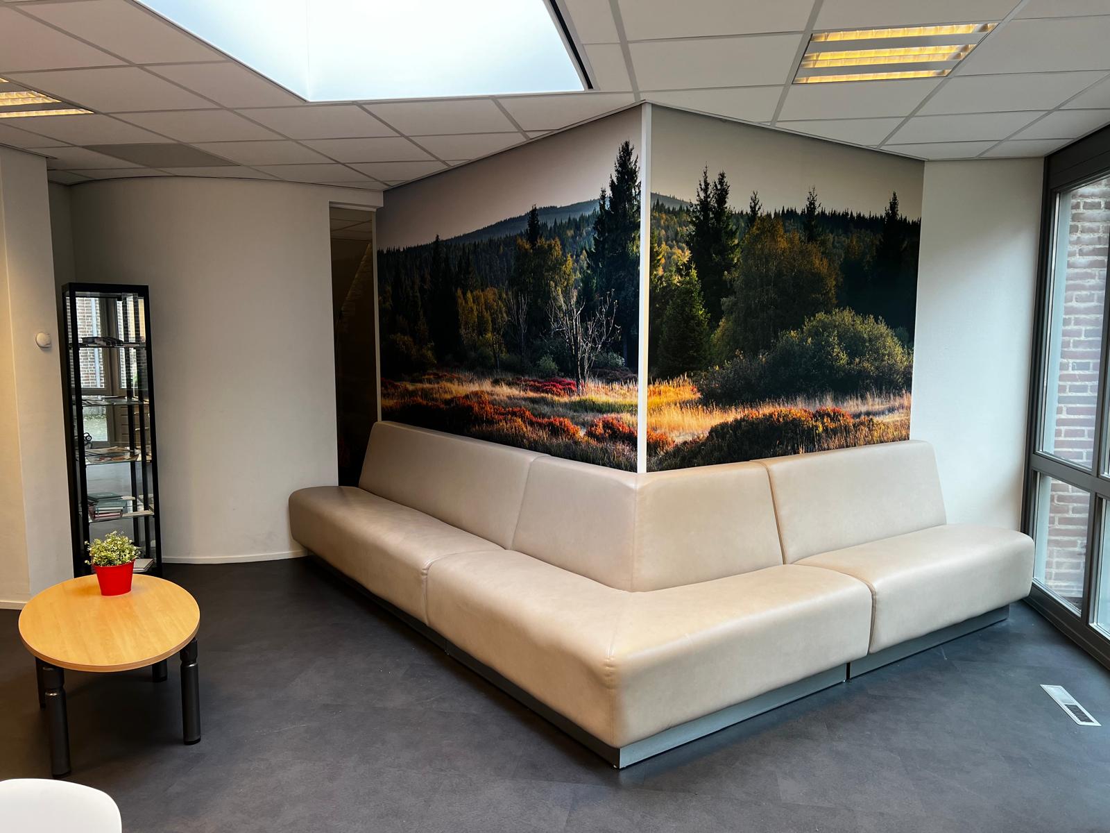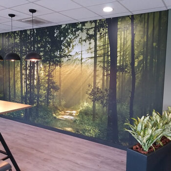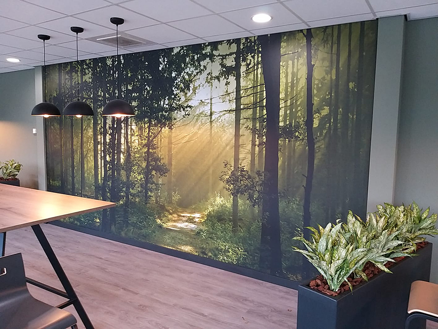Het is mogelijk om elke muur in jouw bedrijfspand te voorzien van een likje verf, maar denk ook zeker eens aan een opvallende muurprint. Een rustgevend bos, kleurrijke onderwaterwereld of technisch detail van je product: jij kiest de foto en wij doen de rest!