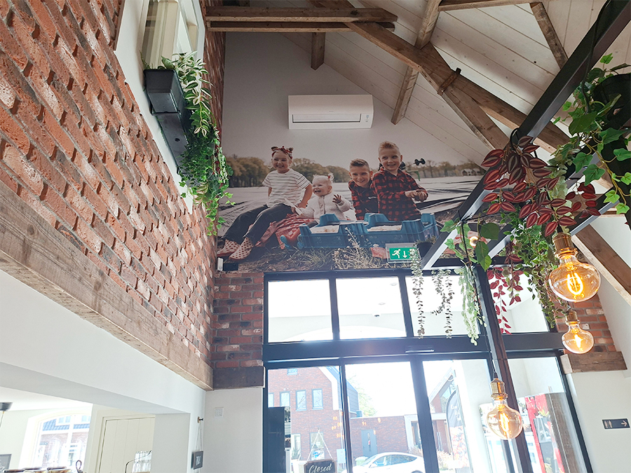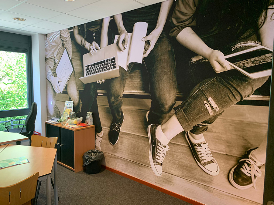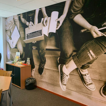 Voor wand vullende afbeeldingen is naadloos fotobehang, ook wel Airtex, een goede oplossing. Dit is een dun kunststof textielbehang dat onze monteurs, gezien de beschikbare printbreedte, naadloos kunnen aanbrengen op gladde wanden met speciale lijm. Naast standaard Airtex, bieden we ook een duurzame versie: namelijk pvc-vrij fotobehang. Heb je interesse in duurzame reclamedragers? Lees er meer over in onze blog.