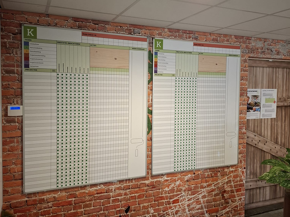 Onze ijzerhoudende platen kunnen we voorzien van een full colour print, geheel naar wens. Denk aan een raster, logo, foto of planning. Alles is mogelijk! Vervolgens wordt de plaat voorzien van een beschrijfbaar laminaat, waar je eenvoudig met een whiteboard marker op kunt schrijven. De full colour print blijft onaangeroerd, ideaal!