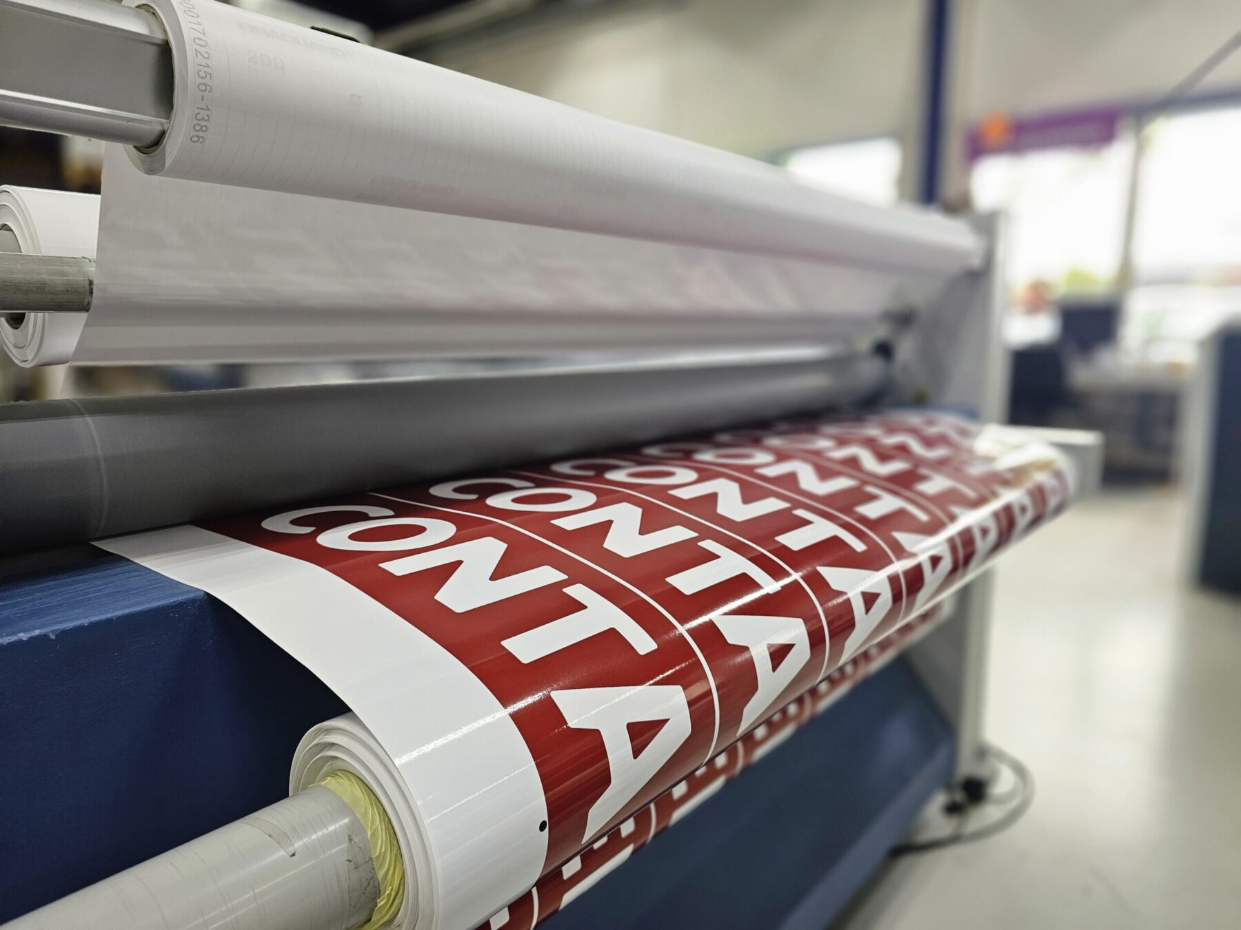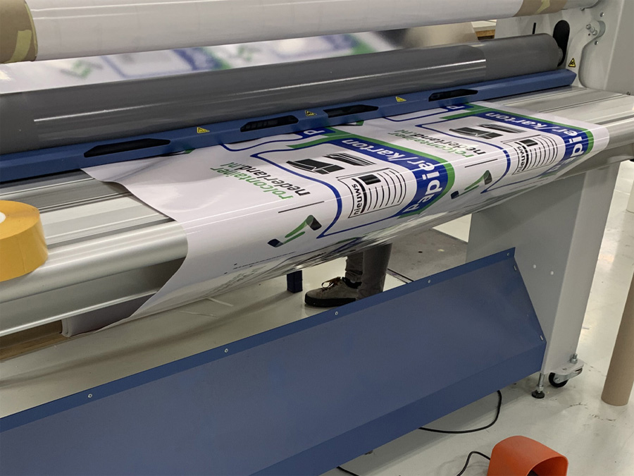 Onze lamineermachines zorgen ervoor dat meerdere lagen van gelijke of verschillende materialen aan elkaar verbonden worden. Met behulp van lamineren brengen we een transparante folielaag aan op een sign. Deze laag zorgt voor bescherming van de print tegen weersinvloeden, verkleuring en eventueel vuil.
