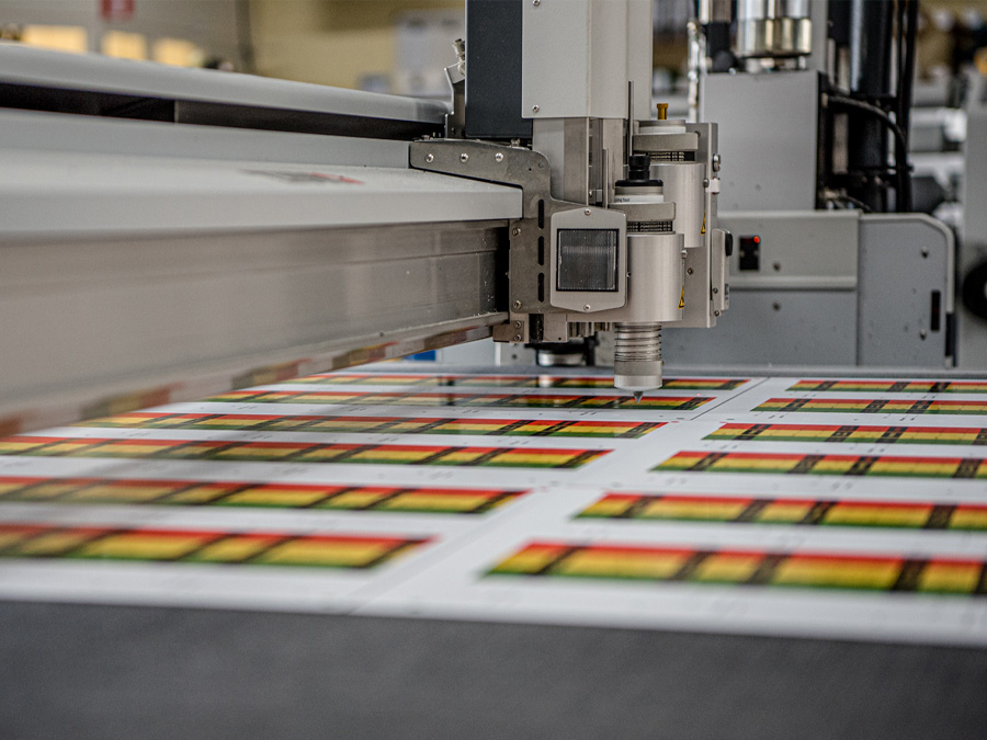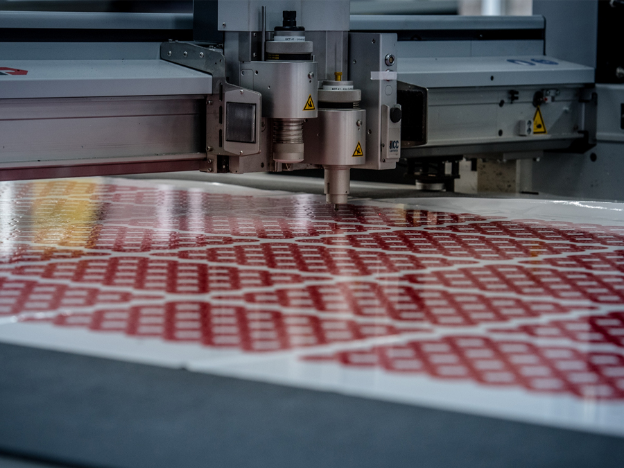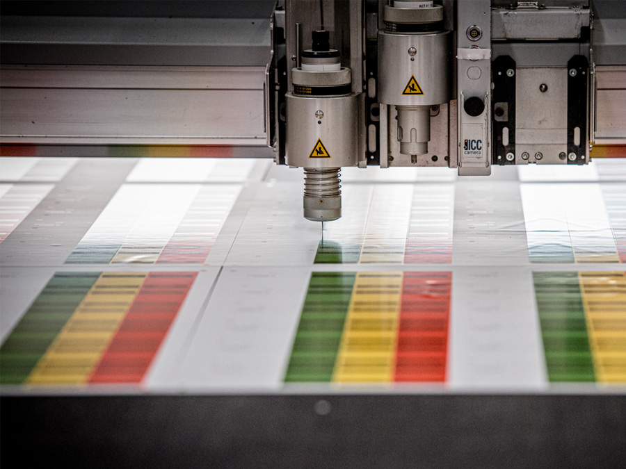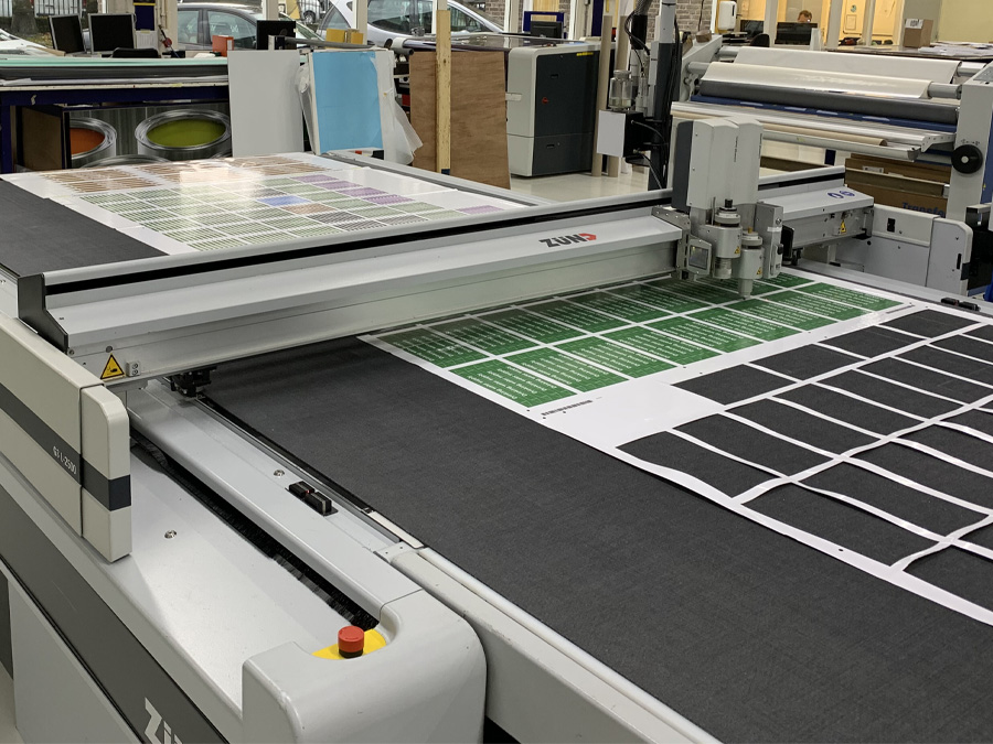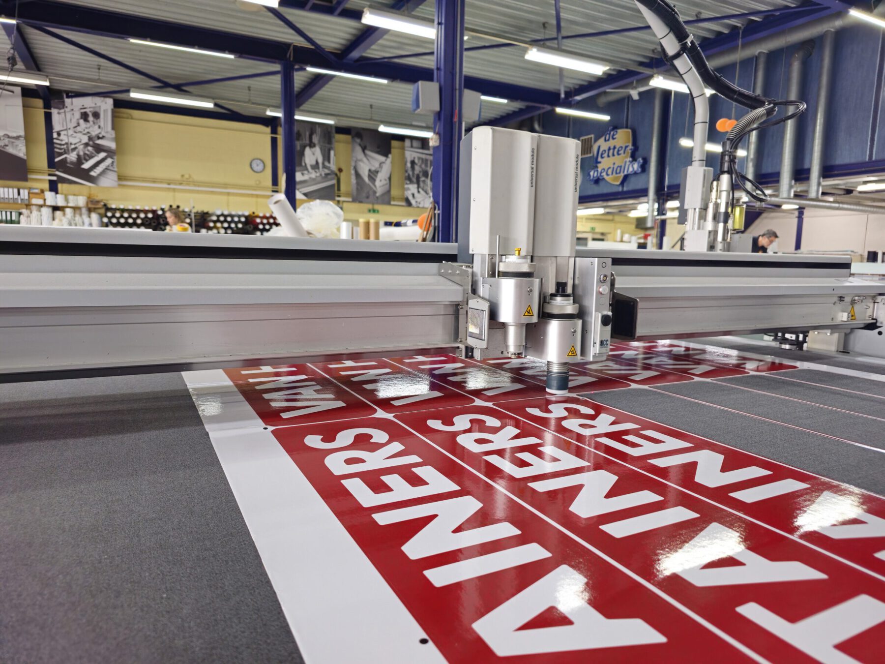 In onze productieruimte hebben wij de beschikking over twee soorten snijmachines. Met onze ZÜND zijn wij in staat om verschillende folies zéér nauwkeurig op maat te snijden. Deze machine zorgt ervoor dat alle producten exact in hetzelfde formaat worden uitgesneden, zowel recht als contour.