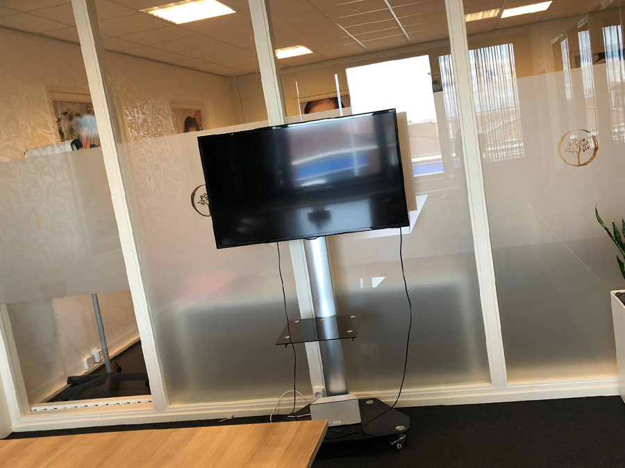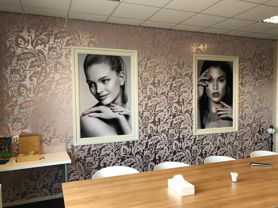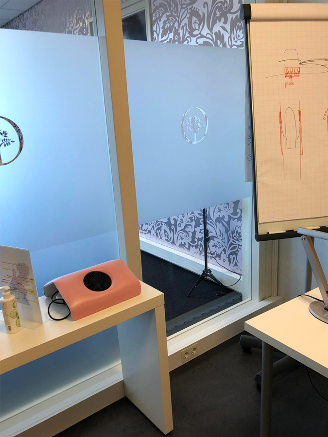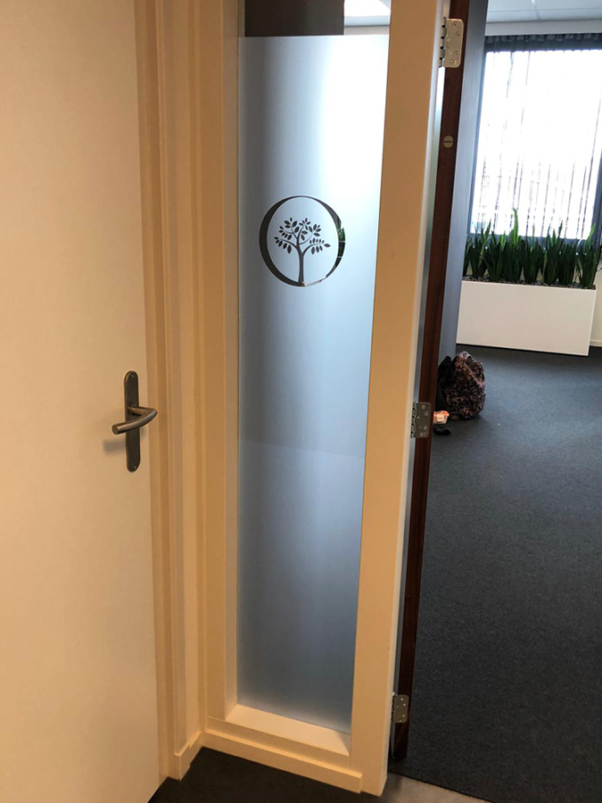 Middels raambelettering ontstaat er privacy en tegelijkertijd een chique uitstraling. Ook zien de muren er weer fris uit door de mooie wanddecoratie. Daarnaast hebben we ook de parkeerbordjes helemaal in stijl geleverd.