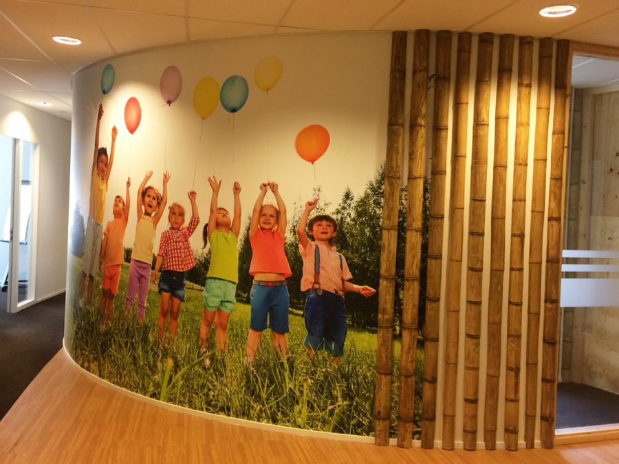Daarnaast zijn de vergaderruimtes voorzien van fleurige Airtex wandbekleding, wat perfect past bij de organisatie. Zelfs het postkastje is door ons gewrapt! Heerlijk opvallend en een keertje wat anders!