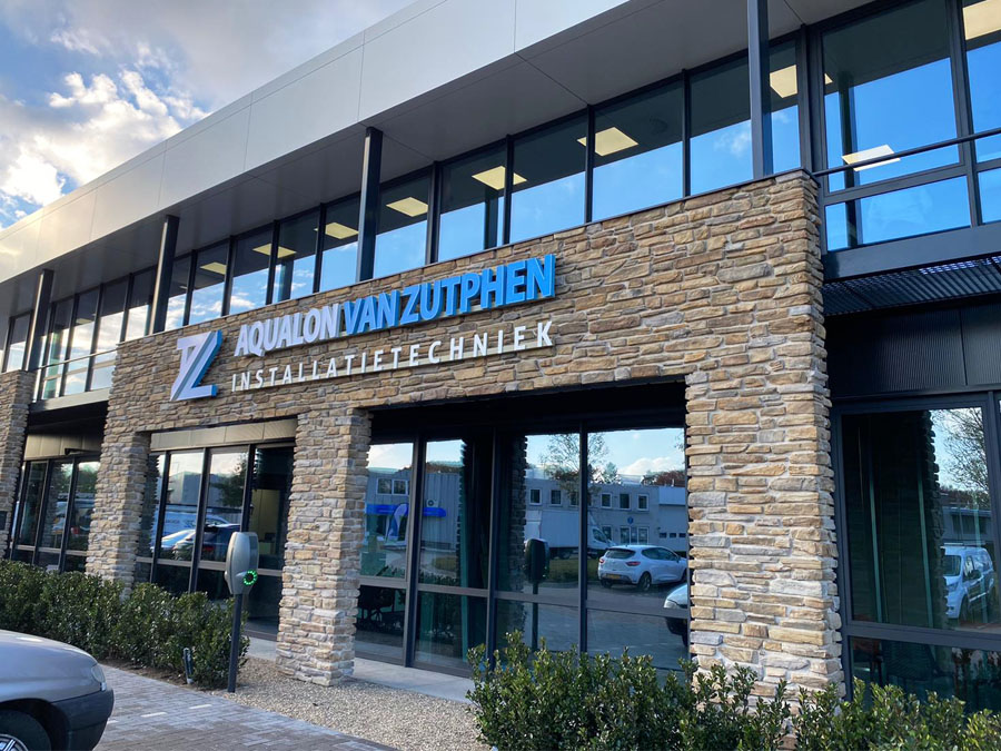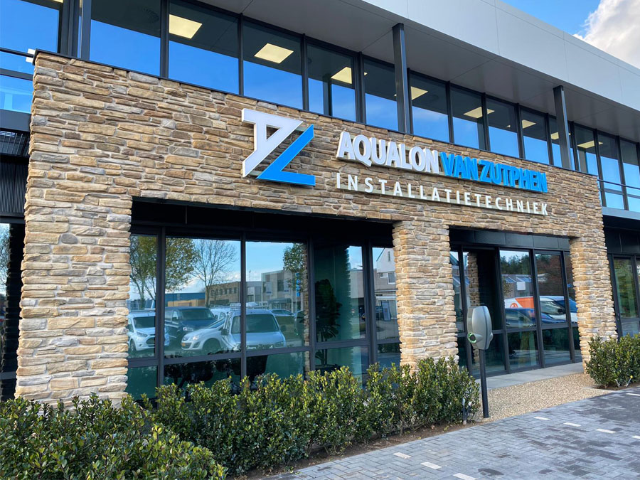 In opdracht van onze klant Mula reclamebureau B.V. hebben wij de productie en montage van de complete nieuwe buitenreclame van Aqualon Van Zutphen Installatietechniek mogen verzorgen.