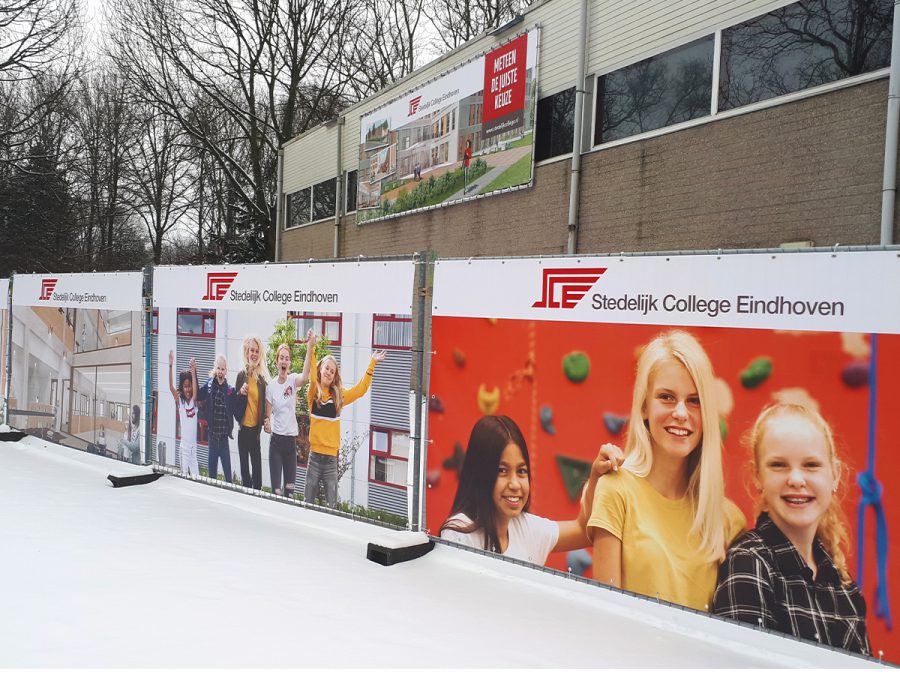 Daarnaast zorgen wij jaarlijks voor de juiste span- en bouwhekdoeken om scholieren welkom te heten bij de start van het nieuwe schooljaar en om de open dagen voor nieuwe scholieren aan te kondigen. Uiteraard mogen ook de diverse raambeletteringen niet ontbreken! Ideaal om afleiding in de klas te verminderen en het schoolgebouw op te leuken.