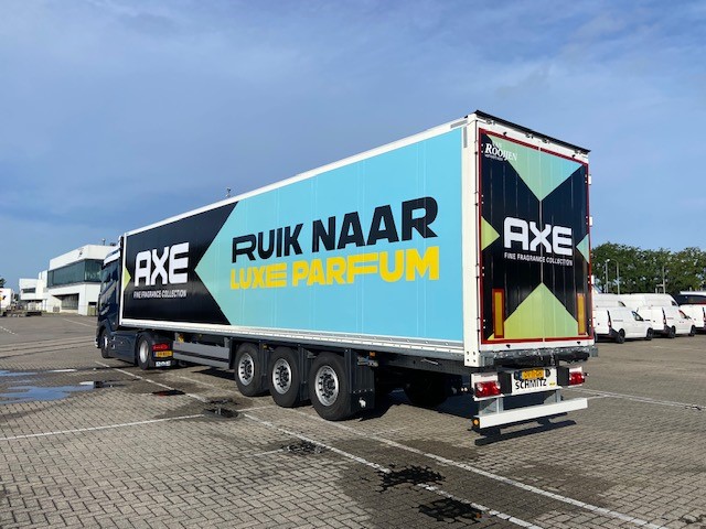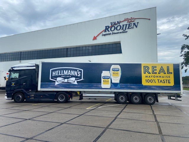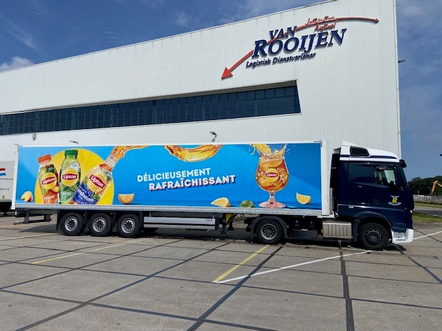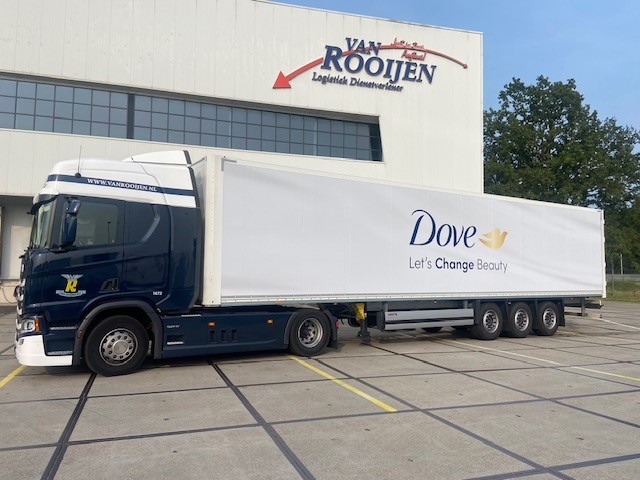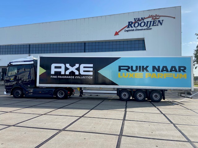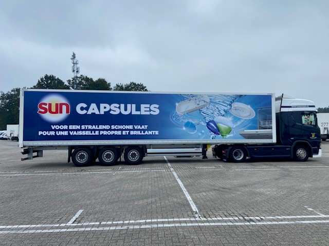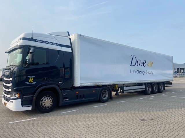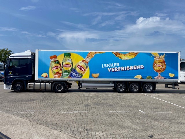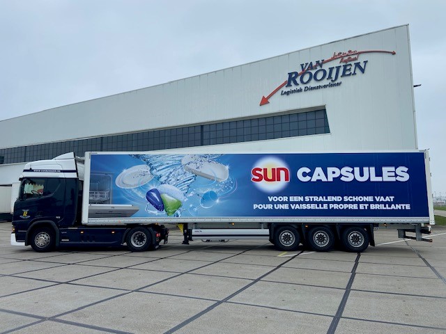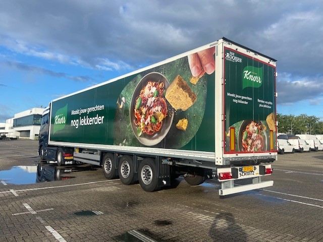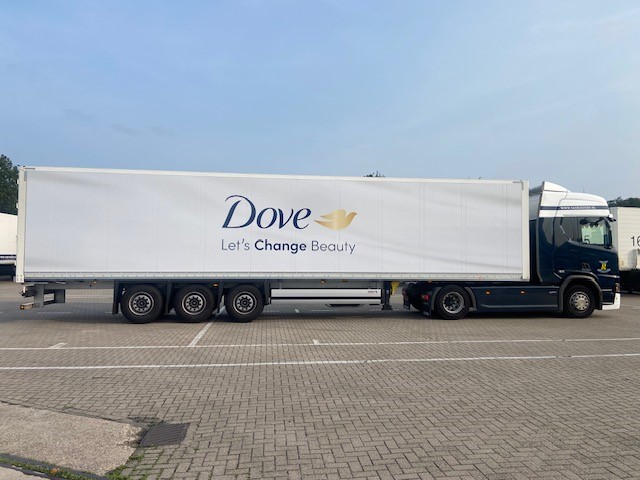 Trailers van Van Rooijen voorzien van Unilever jasje