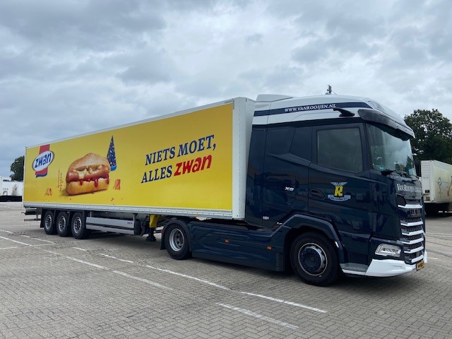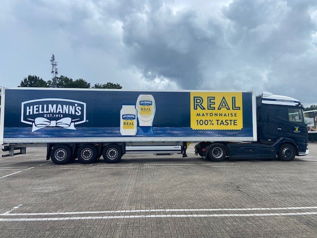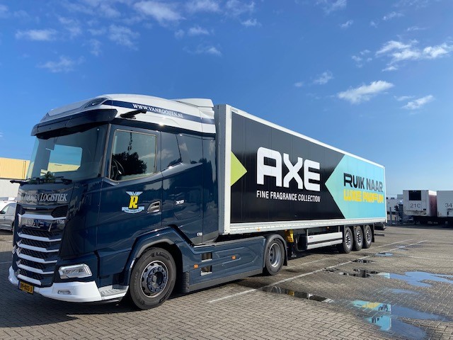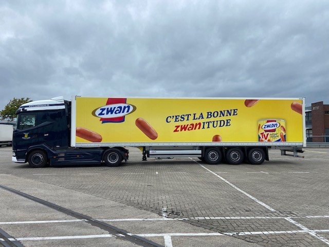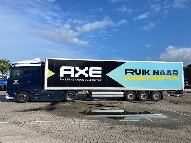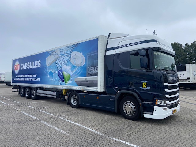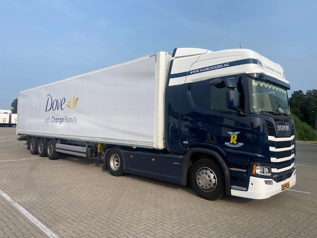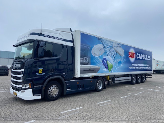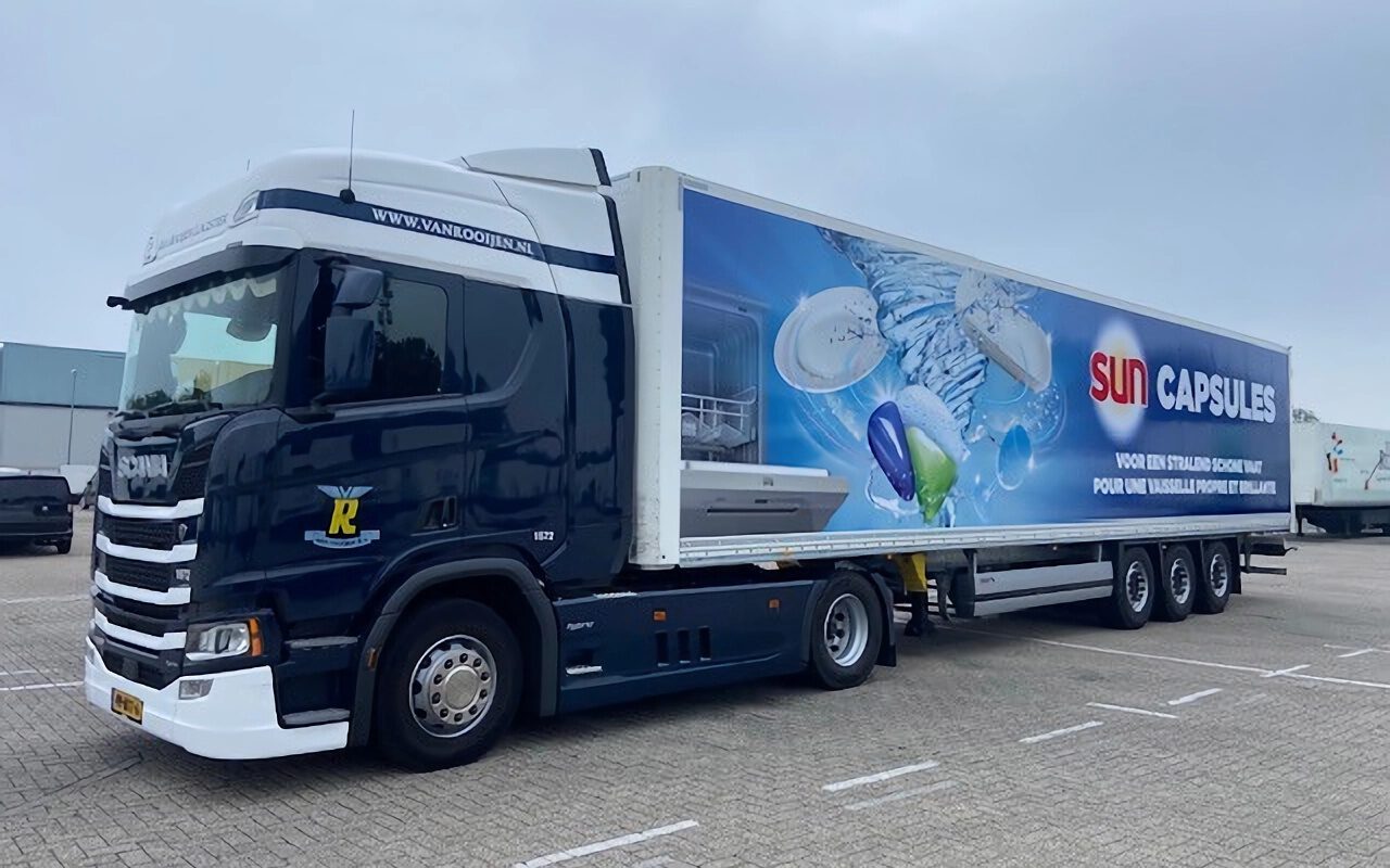 Trailers van Van Rooijen voorzien van Unilever jasje