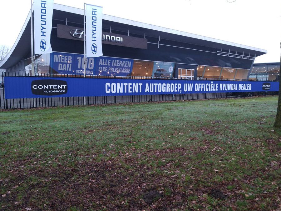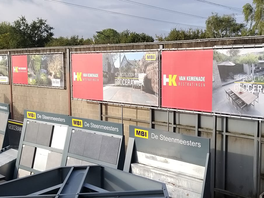- Meshdoek: Spandoeken gemaakt van meshdoek zijn geschikt voor plaatsing op locaties waar veel wind staat. Het materiaal is voorzien van kleine gaatjes, door de open structuur is het spandoek beter bestand tegen de wind en blijft het strak hangen.